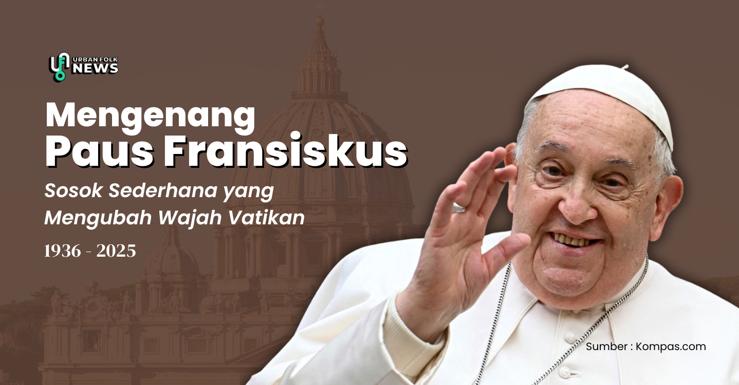 urbanfoknews.com Kabar duka itu datang dari Vatikan. Paus Fransiskus, pemimpin tertinggi Gereja Katolik Roma meninggal dunia, Senin, 21 April 2025 di usia 88 tahun. Paus pertama dari Amerika Latin ini dikenal sebagai sosok sederhana, dan memiliki visi kemanusiaan serta lingkungan yang dikenal mengubah wajah Vatikan di era modern.  Kabar duka ini disampaikan Kardina Kevin Farrel…